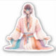 Erleben Sie die Harmonie und Gelassenheit des Boho-Lifestyles mit unserem einzigartigen Aufkleber, der eine meditative Frau in kunstvoller Aquarelltechnik darstellt. Die Illustration zeigt eine Frau von hinten, die auf dem Boden sitzt und in tiefer Meditation versunken ist. Ihr Haar ist mit wunderschönen Blumen und filigranem Haarschmuck geschmückt, was ihre natürliche Schönheit und die Verbundenheit mit der Natur unterstreicht.