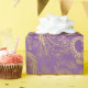 Goldene Boho-Pfauen und Federn auf einem Lavendelboden. Ideal für Entpackung, Handwerk oder Geschenkverpackung. Bitte Karo die Naht-Ansicht heraus, um sicherzustellen, dass sie akzeptabel ist.