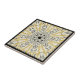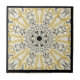Gelbes und schwarzes Mandala-Design mit Blume-Elementen.