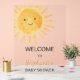 Dieses niedliche Baby-Dusche Begrüßungsschild aus Acryl ist mit einer gelblich gelben Aquarellsonne versehen. Einfach anpassbar. Original Wasserfarbe © Michele Davies.