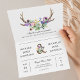 Verblüffen Sie Ihre Gäste mit dieser eleganten, alles-in-einem-Hochzeitseinladung mit farbenfrohem Blumenstrauß und Hirschgeweih mit QR-Code für eine Online-RSVP.