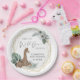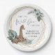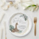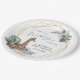 Niedliche geschlechtsneutrale Teller für Ihre Babydusche mit einem geometrischen Goldrahmen mit Wasserfarben einer Giraffe, tropischen Blumen und Salbei-grünen Monstera- und Farn-Blätter. "A Sweet Little Wild One" ist in einer Mischung aus einzigartiger Typografie und zeitgenössischer Schrift geschrieben. Sie können das Geschlecht angeben (z.B. "ist unterwegs").