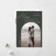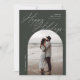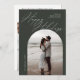 Diese moderne und minimalistische weihnachtliche doppelseitige Flachkarte verfügt über handgeschriebene Schriftzeichen und ein bogenförmiges Foto. Legen Sie Ihre bevorzugten Fotos ein und passen Sie sie Ihren Wünschen an. Fotos von Prostooleh / Freepik.