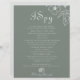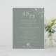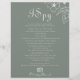 Dieses bohobige, grüne Ziel ist ein Spionage Hochzeitsspiel, das perfekt für eine rustikale Hochzeit ist. Das Design umfasst Apfelblüten und Blume in Aquarellfarben in grünem Hintergrund.