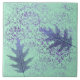 Hübsches Boho Design mit lila Blätter auf grünem und lila Hintergrund.