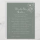 Dieses boho grün würde sie lieber Brautparty-Spiel ist perfekt für eine klassische Brautparty-Feier. Das Design umfasst Apfelblüten und Blume in Aquarellfarben in grünem Hintergrund.