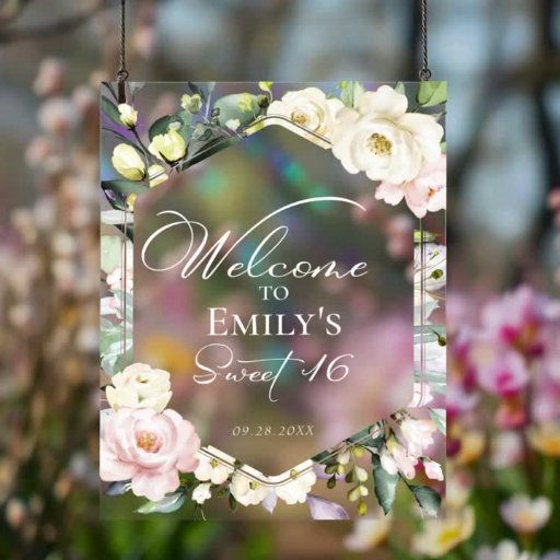 Das von CaMiDesigns entworfene Willkommenszeichen "Sweet 16" von Boho Greenery Floral Frame Sweet, das von der Firma CaMiDesigns entworfen wurde! Dieses wunderschön gestaltete Schild besticht durch ein elegantes böhmisches Blumendesign, das sich perfekt eignet, um einen besonderen Sweet 16 Geburtstag zu feiern. Die üppige Vegetation und die zauberhaften Blumenakzente schaffen eine warme und einladende Atmosphäre für die Gäste. Dieses Willkommensschild eignet sich ideal für Innen- und Außenveranstaltungen und verleiht Ihrem Anlass eine Touch von Eleganz und Stil. Für Bestellungen, Versand, Produktinformationen und weitere Hilfe, wenden Sie sich bitte direkt an den Zazzle Kundenservice, um Touch zu erhalten.