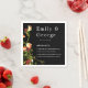 Diese eleganten, blumengeschmückten Servietten sind perfekt für eine moderne Blumenhochzeit im Sommer. Das romantische Design besticht durch die Blume in den Farben des Wassers und die elegante, weiße Typografie auf feinem schwarzem Hintergrund.