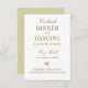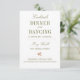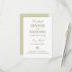 Diese Karte mit subtilem, olivgrünem Text ist mit schönen typografischen Farben versehen, die auf der Rückseite grün aus Palmenblättern und in der Textfarbe Oliven grün sind (beide sind im Designwerkzeug vollständig anpassbar). Laden Sie Ihre Gäste zu einem der besonderen Dinge ein, die Sie geplant haben.
