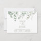 Boho Greenery Foliage Eukalyptus Wedding Save the Date Card. Stilvoll beeindrucken Sie Ihre Hochzeitsgäste mit dieser elegant gestalteten Hochzeitskarte, die mit schönen grünen Eukalyptus-Blätter auf weißem Hintergrund rette. Diese Hochzeitskarte rette-the-date und bietet ein wunderschönes grünes Blattdesign mit rustikalen und botanischen Farbtönen, die sich perfekt für Ihre Hochzeit im rustikalen, grünen oder eukalyptusartigen Stil eignen. Die minimalistische und moderne Einrichtung verleiht dem üppig grünen, eleganten Eukalyptusblatt-Set einen minimalistischen Hintergrund mit einem zarten, dunkelgrünen Schriftart. Diese Hochzeitskarte rette den Ton für eine wunderschöne Hochzeitslandschaft, umgeben von Silbergrün oder schlauer grüner Hochzeitsdekoration. Eine perfekte Ergänzung zu jeder botanischen oder rustikalen Feier.