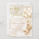 Boho He Or She Beige Balloons Bear Gender Reveal Einladung