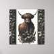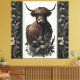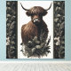 Diese Hochlandkuh mit einem dunklen und blumigen Streifen, der ein anspruchsvolles und charmantes Landbild schafft.