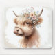 Wasserfarbene Hochlandkuh mit Blumenstrauß