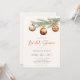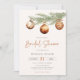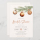 Minimalistische neutrale Bridal Dusche Einladung mit Wasserfarben Kiefernzweig mit Weihnachtsbälle dekoriert.