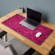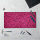 Eine charmante und raffinierte Schreibtischmatte mit einem hübschen blumengeschmückten Federmuster mit Honigbienen. Diese elegante Kreation zeigt die Hauptfarben Schwarz und Heiß Rosa und schafft so eine optisch ansprechende Ästhetik für Ihren Arbeitsbereich.