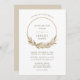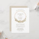 Dieses Hochzeitsdesign besticht durch die Namen von Braut und Bräutigam, die von einem goldenen Hoop gerahmt sind, der mit Aquarellgras dekoriert ist. Personalisieren Sie den hellbraunen Text mit den Namen des Paares und den Einzelheiten der Hochzeit. Die Rückseite ist in einem kräftigen Beige gehalten.