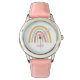 Kinderuhr aus Edelstahl mit rosa Lederarmband