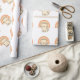 Cute boho-style kitten wrapping paper featuring a kawaii cat in earthy tones. Retro 70s arch motif and sunburst design with a minimalist, neutral palette—perfect for laptops, journals, or gifts.
