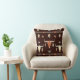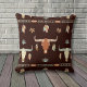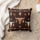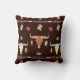 Auf diesem Kissen ist ein attraktives Stammesmotiv mit Kuhschädel und Federn. Die Bilder sind braun, blassblau, braun und goldfarben und auf einem dunkelbraunen schwarzen Hintergrund platziert. Beide Seiten des Kissens haben das gleiche Design, das sich gut in einen Western oder ein typisch amerikanisches Dekor einfügt.