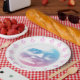 Papierplatte des funky Vintagen Mondes des Spaßes. Retten Sie ein, um oben auf Ihrer Wand anzuheften!