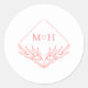 Boho Leaf Monogram Coral Pink Wedding Runder Aufkleber