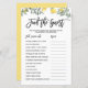Fügen Sie Ihrer Veranstaltung diese lustige und spielerische botanische Eisbrecher-Spielkarte hinzu. Es zeigt Aquarellbilder von Zitronen und Grünpflanzen. Sie können die Karte personalisieren, indem Sie zurückliegende Texte hinzufügen. Diese Zitrone Finde die Gust-Gästekarte ist ideal für Hochzeiten, Brautpartys, Babyduschen, Geburtstagspartys und vieles mehr.