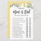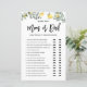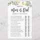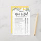 Rate mal, wer! Mama oder Papa? Fügen Sie diese lustige und spielerische botanische Baby Duschspielkarte zu Ihrer Veranstaltung hinzu. Es zeigt Aquarellbilder von Zitronen und Grünpflanzen. Sie können die Karte personalisieren, indem Sie zurückliegende Texte hinzufügen. Diese Zitronendusche mit Spielkarte ist ideal für Frühlings- und Sommerduschen.