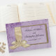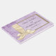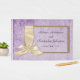 Dieses charmante lila Hochzeitsgast-Gästebuch zeichnet sich durch ein ausgeprägtes Boho-Thema aus. Das Design besticht durch ein sehr rustikales Ambiente mit einem verblassenden lila Pergament-Design als Leinwand. Auf der Vorderseite befindet sich ein Holzrahmen aus Imitat, der mit einem großen, weißen Satin-Band auf der links Seite verziert ist. Auf der Rückseite ist auch ein Paar Hochzeitsglocken. Alle Details können zum Anzug personalisiert sein.