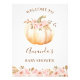 Boho Floral Little Pumpkin Baby Dusche Begrüßungszeichen Hübsches Mädchen's ein süßer kleiner Kürbis ist auf dem Weg Babydusche Begrüßungsschild mit einem blassorangen Kürbis und einige rosa und meist braunen floralen Arrangements. Dieses Design ist ideal für einen kleinen Herbst oder Herbst Babydusche.