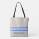 Rustikaler Burlhintergrund mit mediterranem Fliesenmuster in Blau und Weiß. Optionale Formulierung: Fügen Sie Ihren Namen, Teamnamen oder Firmennamen hinzu oder verließ Sie leer. Ein einfaches Design auf einer hochwertigen, gut gemachten Tasche. Bitte kontaktieren Sie uns für jegliche Design- und/oder Produktanfragen.