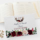 Boho Merlot Navy Blue Floral Antlers Wedding Gästebuch
