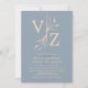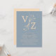 Boho Minimal Dusty Blue Leaf Monogram Wedding Einladung