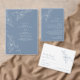 Present your wedding meal in style with this elegant dusty blue dinner menu card. This design features delicate white botanical line art paired with clean, modern typography for a refined boho look. The soft dusty blue background creates a calm and romantic feel, perfect for any wedding setting.