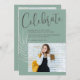 Mit dieser minimalistischen Abschluss-Karte mit sanften Salbei-Grün-Tönen, handgeschriebenen Schriften und persönlichen Fotos verkünden Sie den besonderen Tag Ihres Absolventen. Dieses Design wurde für High School oder Uni-Abschluß entwickelt und lasse Ihnen, die Veranstaltungsdetails zu aktualisieren und die Lieblingsbilder Ihres Absolventen hochzuladen. Ideal für den Versand an Freunde und Familie oder für die Verleihung auf Abschlussfeiern. Machen Sie es einzigartig mit einfacher Anpassung.