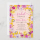 Celebrate love with this unique hand-painted floral bridal shower invitation. The boho-modern design features vibrant hues of purple, green, lavender, and yellow, creating a bold and cheerful atmosphere on pastel blush pink. The loose watercolor florals add a touch of whimsy, while the faux glitzy gold glitter confetti brings a touch of glamour. The modern elegant script typography font adds a sophisticated and stylish element to the invitation. Perfect for a bohemian-inspired celebration, this original hand-illustrated invite sets the tone for a joyous and memorable event.