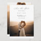 Entdecken Sie den Zauber Ihres bevorstehenden besonderen Tages mit unserem "Boho Modern Minimal Vertikal Foto Save the Date Einladung". Diese Einladung, die ruhige Schönheit eines Sonnenuntergangs zu erfassen, dient als malerischer Auftakt für Ihre Gelübde. Seine raffinierte Kalligraphie und minimalistisches Design verkörpern moderne Eleganz, zugeschnitten auf Paare, die eine Mischung aus Romantik und zeitgenössischem Stil suchen. Diese doppelseitige Karte eignet sich sowohl für schicke Hochzeiten in Urlaubsort als auch für intime lokale Ansammlungen und lädt Ihre Gäste ein, ihre Kalender zu markieren. Feiern Sie Ihre Liebe mit dieser luxuriösen, zeitlosen Einladung, die eine Feier so atemberaubend wie der Sonnenuntergang, den sie darstellt, verspricht.