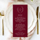 Boho Monogram Elegant Burgundy Wedding Dinner Menükarte