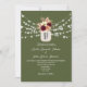 Elegante, schicke, boho, Aquarellblumen, bordeauxroter Pfirsich und grüne Hochzeitseinladung mit Foto, Website und QR-Code für uAwg.