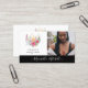 Esoteric Boho Moon Crystals Feathers Blume Business Card mit Fotovorlage und weißem Hintergrund. Wasserfarbenes böhmisches Design mit Halbmond, Rose Quarz und Zitruskristall Cluster Punkte, rosa Rosen, Grün und weiße Federn. Ideal für Ihr metaphysisches, esoterisches, Wellness-Center, Therapeut, Energiehelfer , Klinik und spirituelles Geschäft. Text bereit für Ihre Informationen. Ersetzen Sie Foto durch Ihr eigenes.