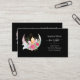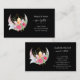 Boho Moon Crystals Feathers Blume Kristallcluster, Pink Watercolor Blume, weiße Federn, Blätter mit Aquarellfarben Crescent Moon Design Business Cards. Text bereit für Ihre Informationen.