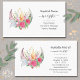 Boho Moon Crystals Feathers Blume Kristallcluster, Pink Watercolor Blume, weiße Federn, Blätter mit Aquarellfarben Crescent Moon Design Business Cards. Text bereit für Ihre Informationen.