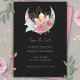 Dieses Boho Einladungs-Set mit Aquarellmond mit rosa Blume, Goldkristallen und weißen Federn ist die ideale Wahl für eine mystische oder metaphysische spirituelle Gewerkschaft, Handfasten oder Hochzeit.