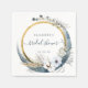 Dieses boho-Design enthält die Worte "Brautparty" in elegantem indigohandgeschriebenen Skript mit Schnörkeln am Anfang und Ende, gerahmt durch einen Aquarellkranz, der einen Streifen indigoblau Mond, Pampas Gras, weiße Blume und einen vergoldeten Imitat-Folienkreis enthält. Personalisieren Sie den Text mit dem Namen der zukünftigen Braut und dem Datum der Dusche.