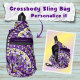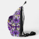 Boho Mosaic Tile Violet Flame - Diese helle Violet Flame-Stil Sling Bag / Crossbody Bag kann auf der Oberseite der Reißverschlusstasche personalisiert werden, einfach mit Ihrem Namen, oder Ihrem Lieblingsmotto anpassen, oder löschen Sie es, um nur das schlichte Design auf Ihrem Produkt zu haben. Dieses Design wird von portugiesischen Fliesenmustern inspiriert und ist ein nettes Geschenk für Mandala Liebhaber.