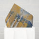 Schönes aritistisches Klimt-inspiriertes bohobisches Papiertaschentuch für die Geschenkverpackung. Schöne, helle blaue und goldene Sommeraussicht mit weißen und goldenen Colorado-Apfelbäumen.