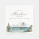 Die Clover Collection verfügt über ein Aquarellbild eines Bergsees mit rustikalen grünen Pinienbäumen und einen eleganten Script-Schriftart. So perfekt für Ihr Brautparty in Berg oder Abenteuer.