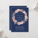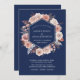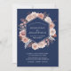 Boho Navy Blue Pink Floral Wreath Wedding Einladung