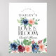 Greet guests with elegance and romance using this "Love in Bloom" bridal shower welcome sign, featuring moody watercolor florals in deep navy blue and soft blush pink. Designed with a rich, seasonal color palette and boho-inspired blooms, this sign sets a sophisticated tone for your fall or winter bridal shower. The romantic florals and flowing script typography make it the perfect addition to an entryway or display table. This sign adds a beautiful finishing touch to your celebration decor.