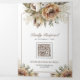 Boho Neutral Earthy Floral Taupe QR Code Hochzeit Dreifach Gefaltete Einladung