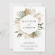Feiern Sie Ihren besonderen Tag mit dieser Boho Neutral Tropical Blume Hochzeitseinladung. Tropische Cremeblüten, Pampas-Gras, Palmen-Blätter und weiche Vegetation umrahmen Ihre Namen und Details in eleganter moderner Typografie. Dieses Hotel ist ideal für Hochzeiten am Strand, tropische Hochzeiten in Urlaubsort oder Hochzeitsfeiern im Garten und verbindet natürliche Schönheit mit ungestörter Eleganz.